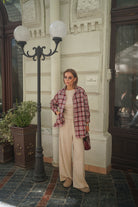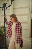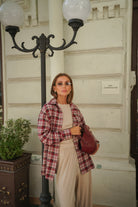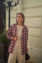 Деликатният бордо каре принт носи усещане за топлина и стил, а свободната кройка подчертава естествената ти женственост.