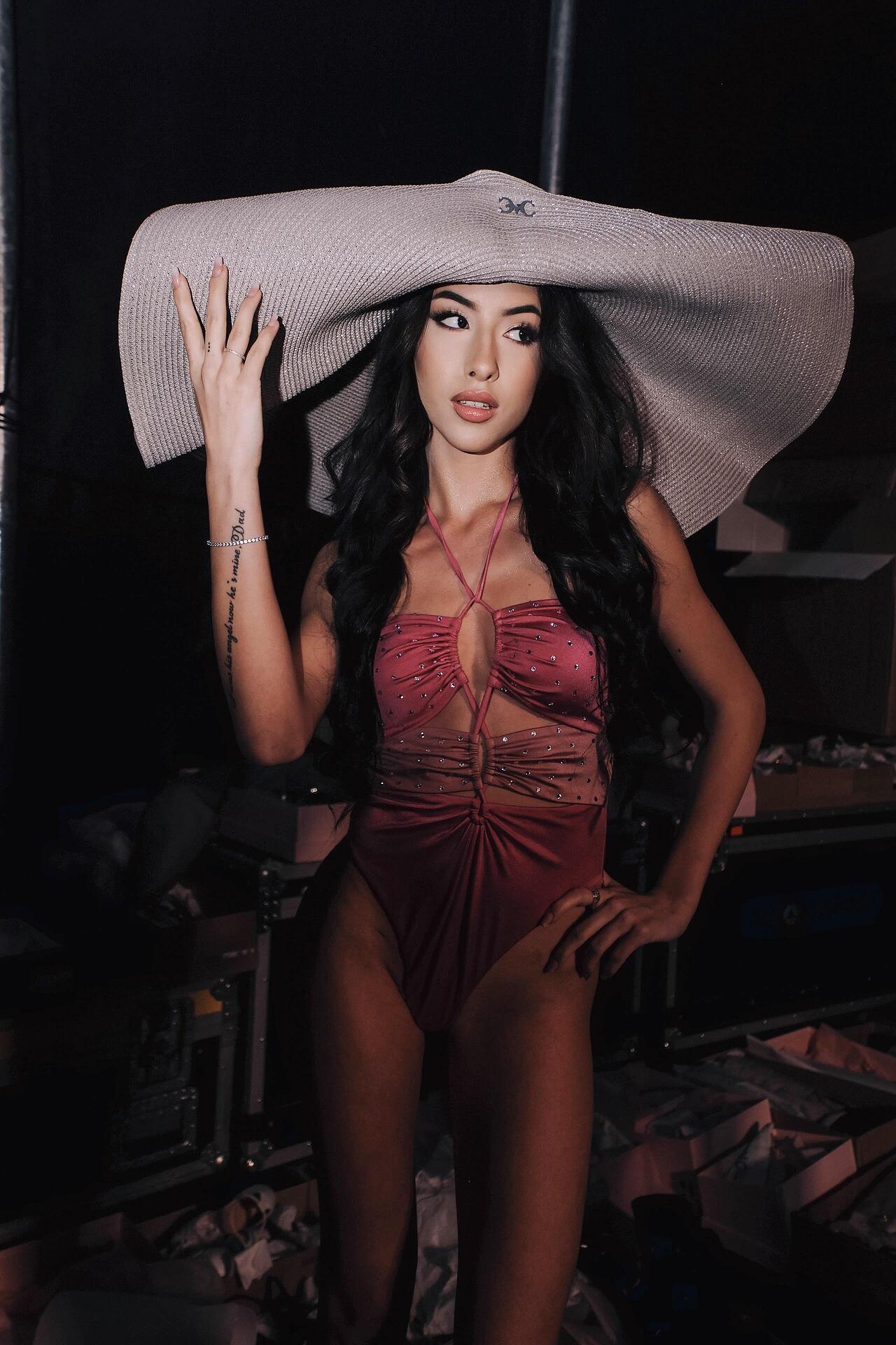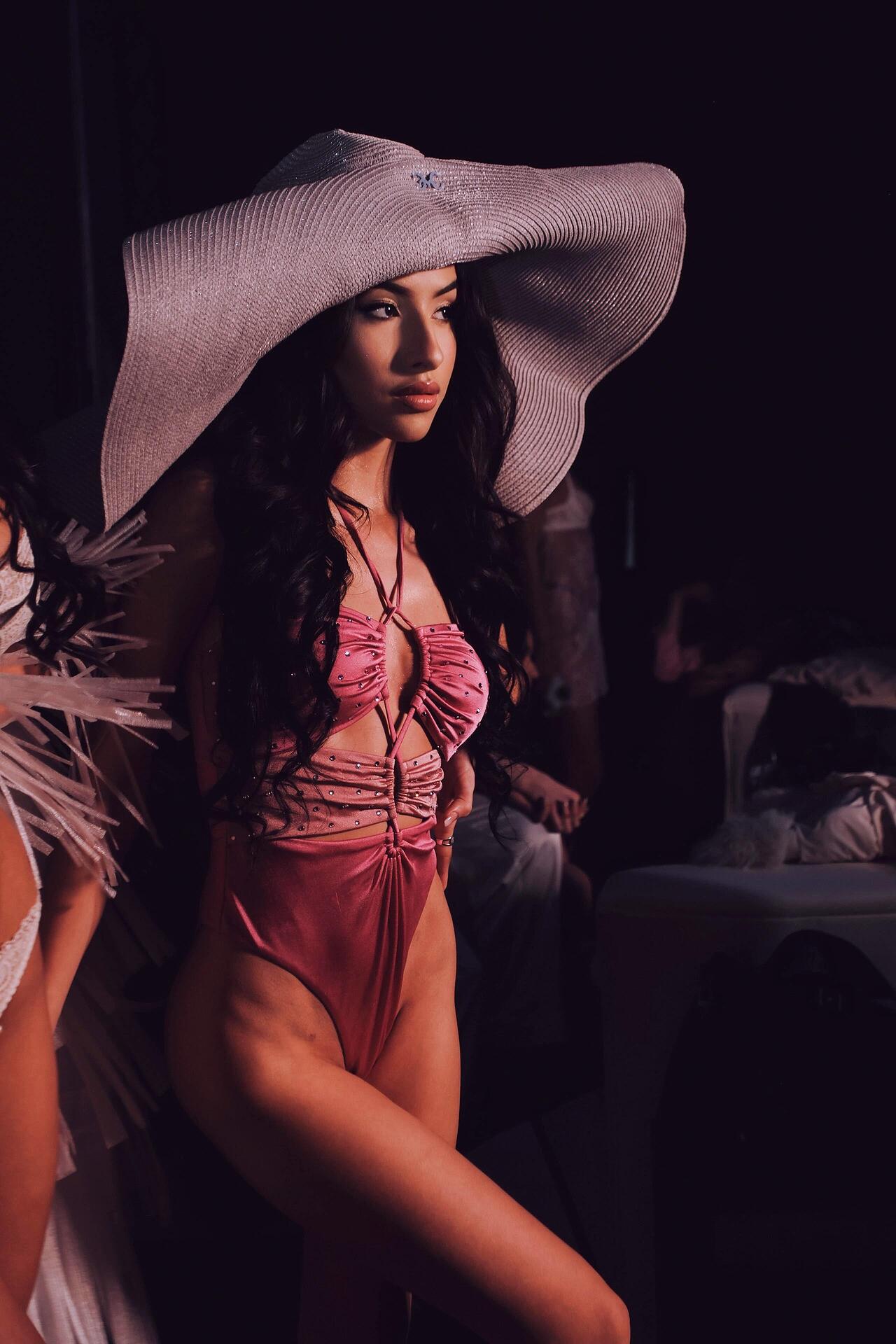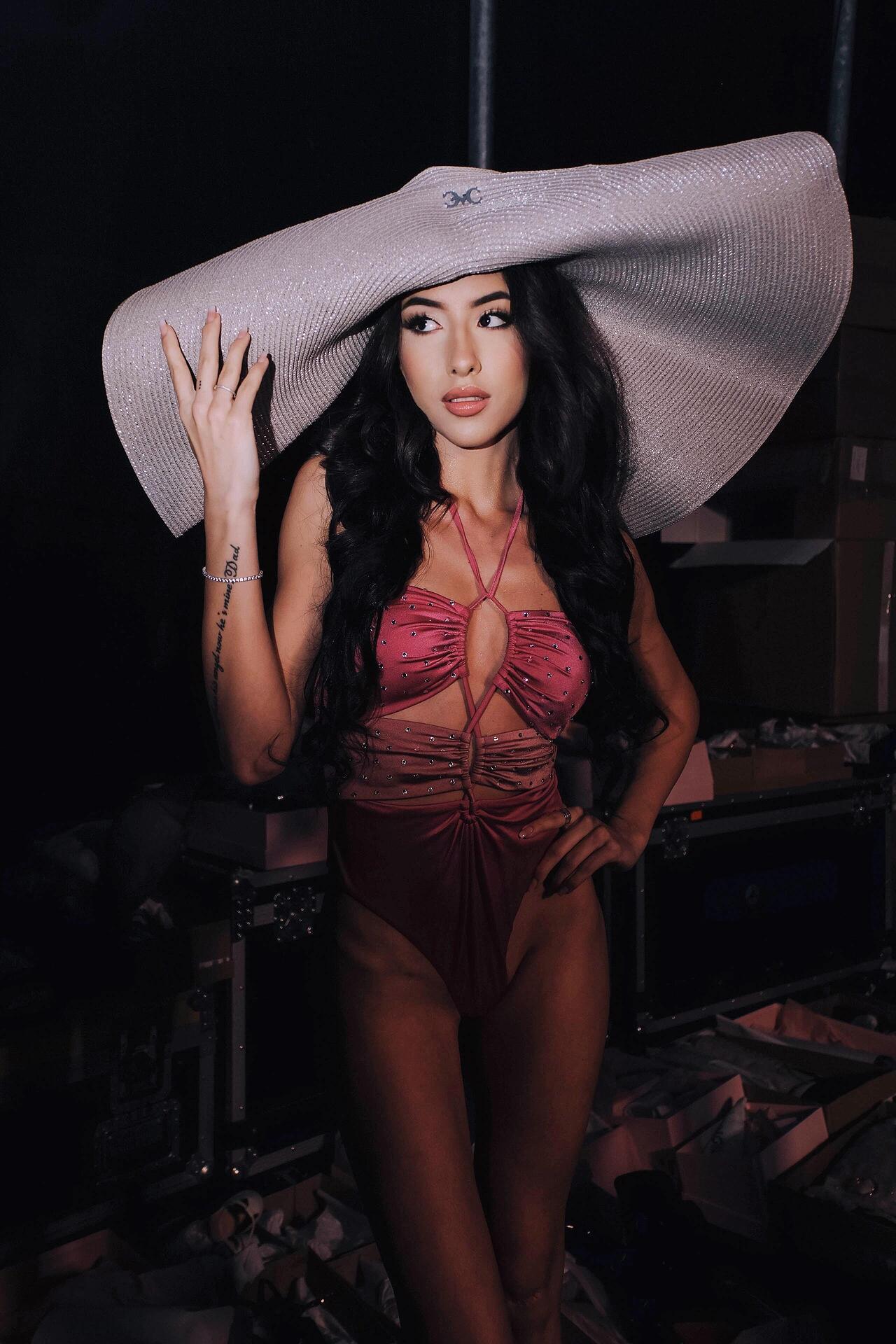 Цял бански в блестящо розово с кристали: Crystal Blush