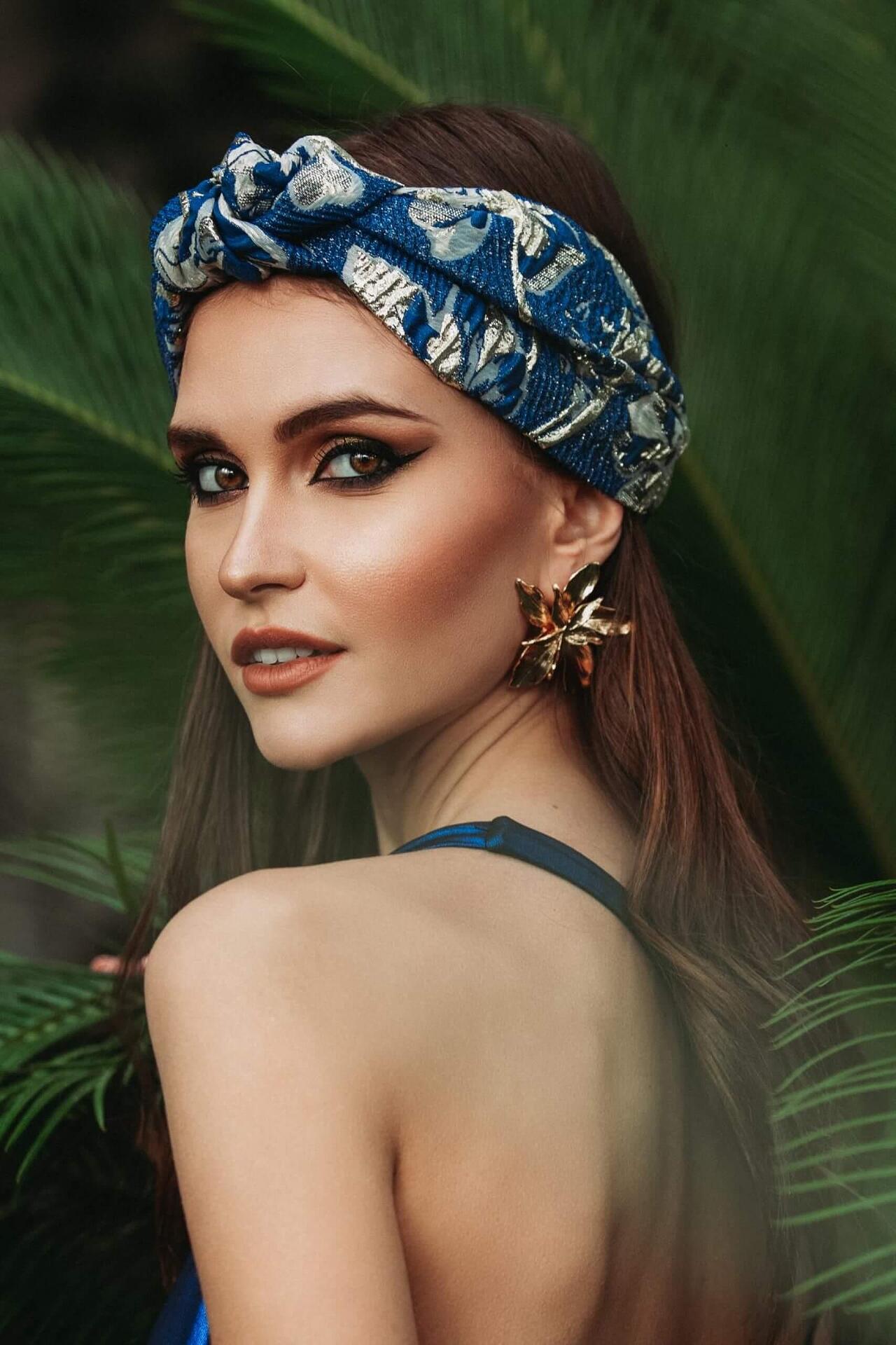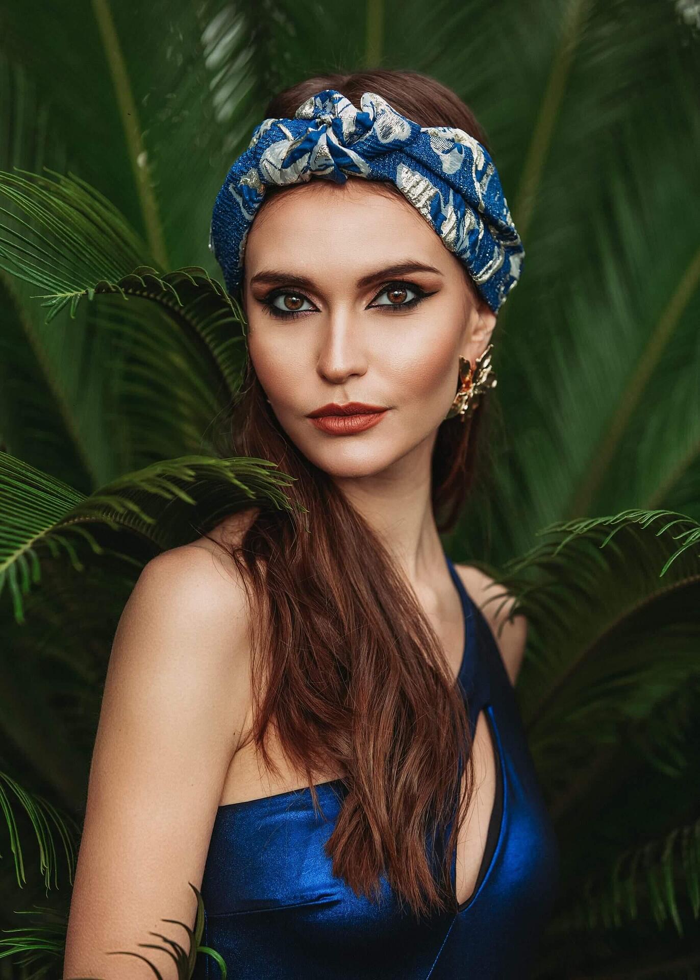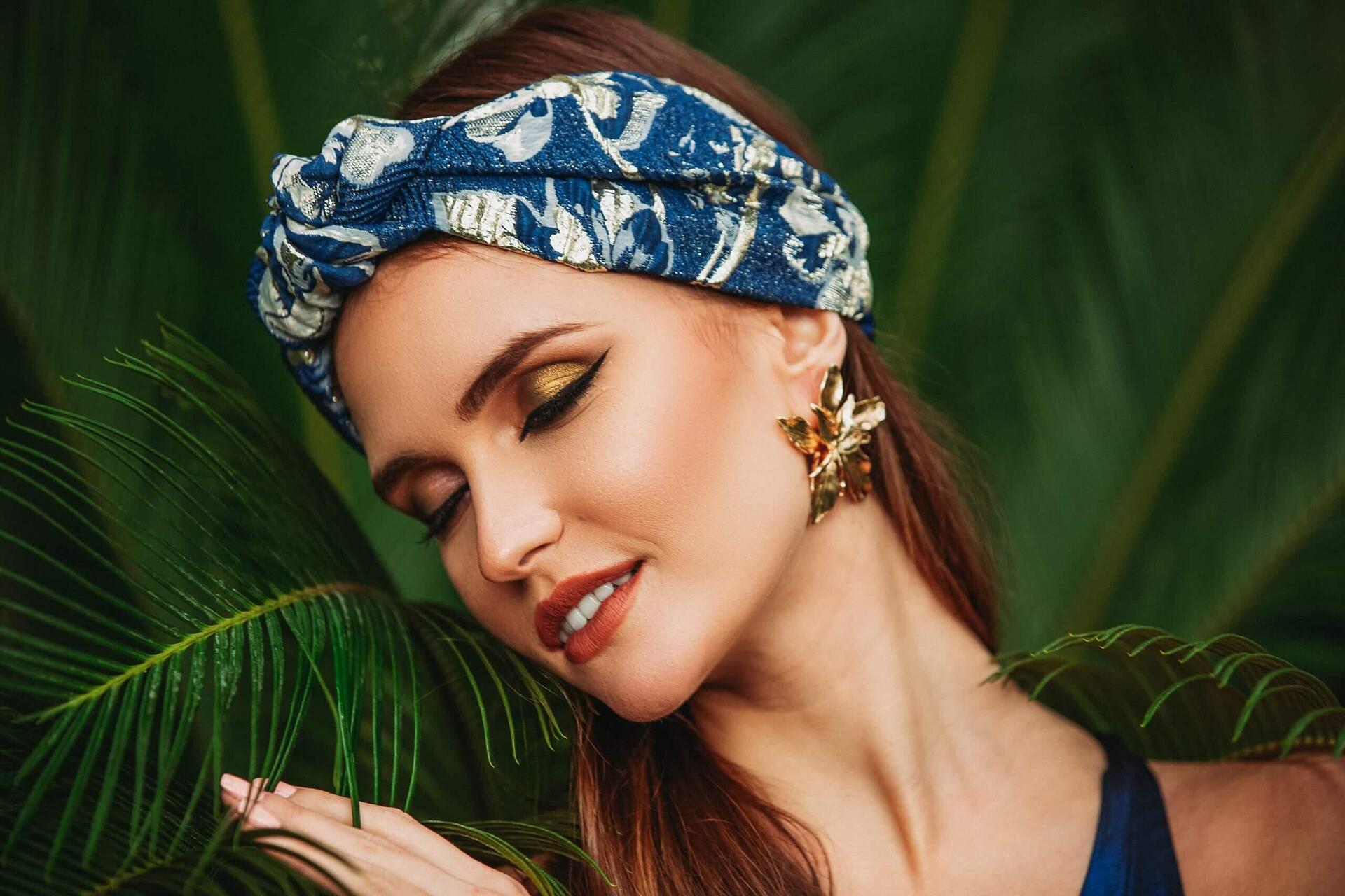 Жакардова лента за глава в синьо и златно
