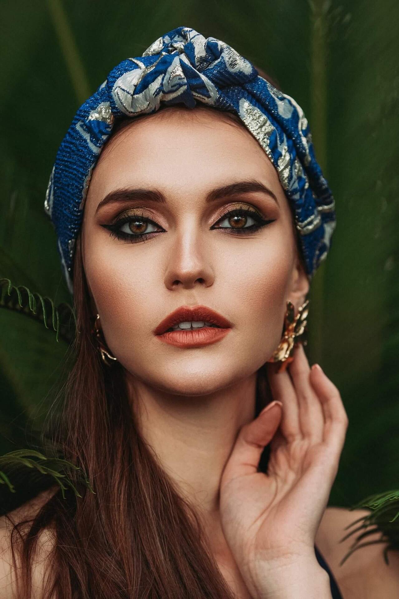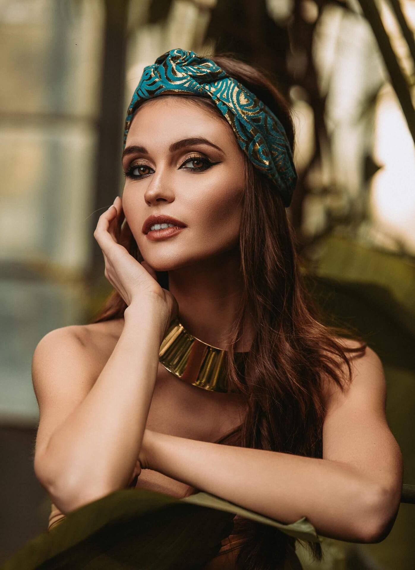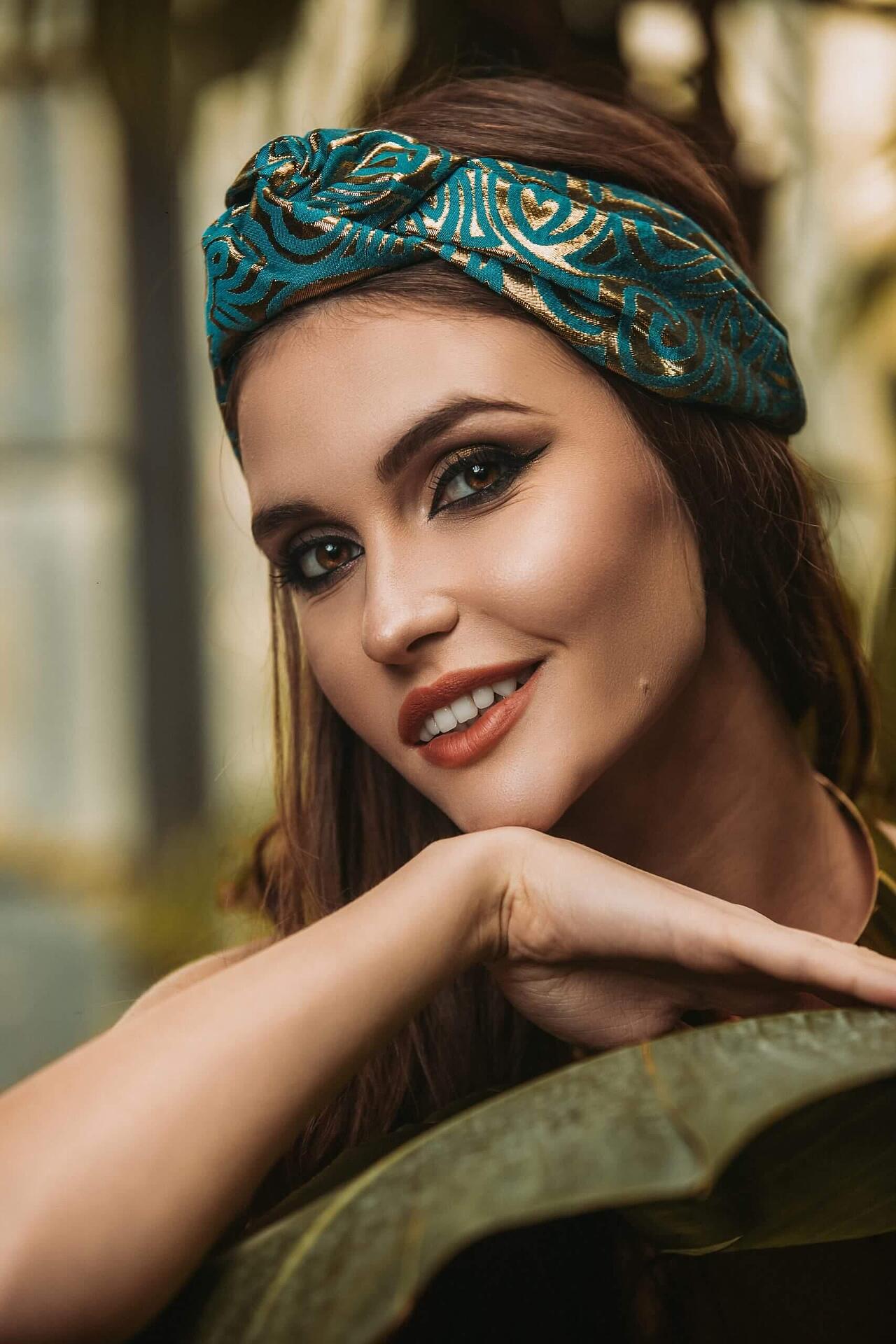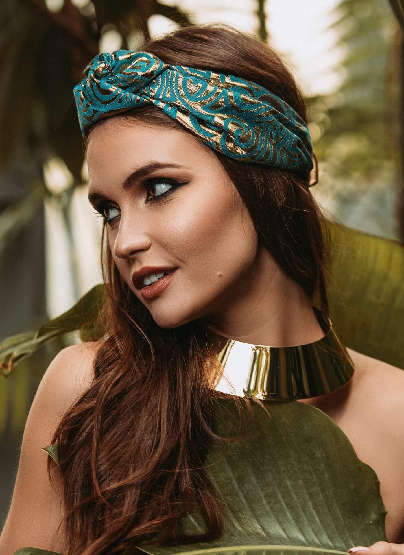 Жакардова лента за глава в синьо-зелено и златно