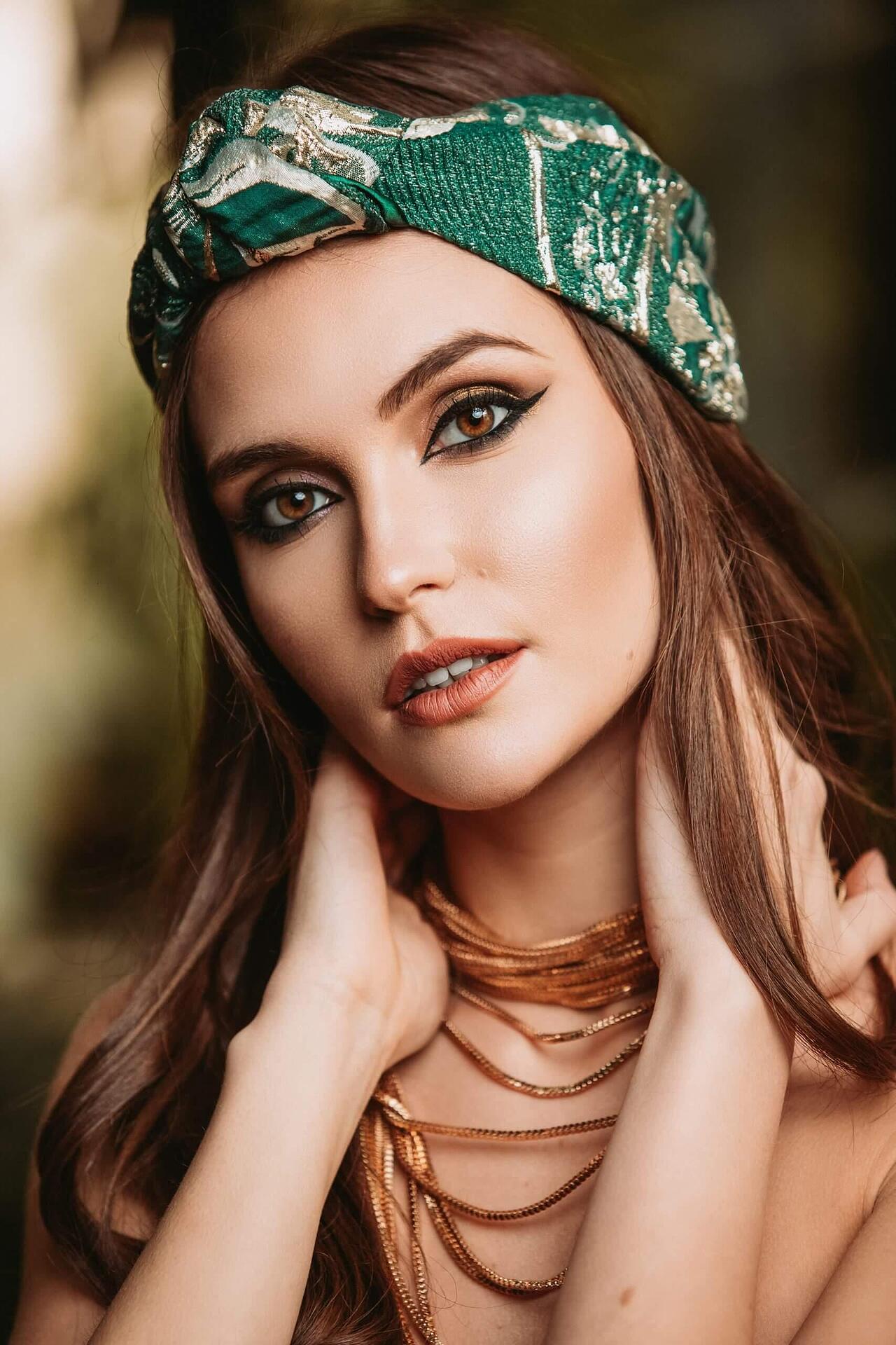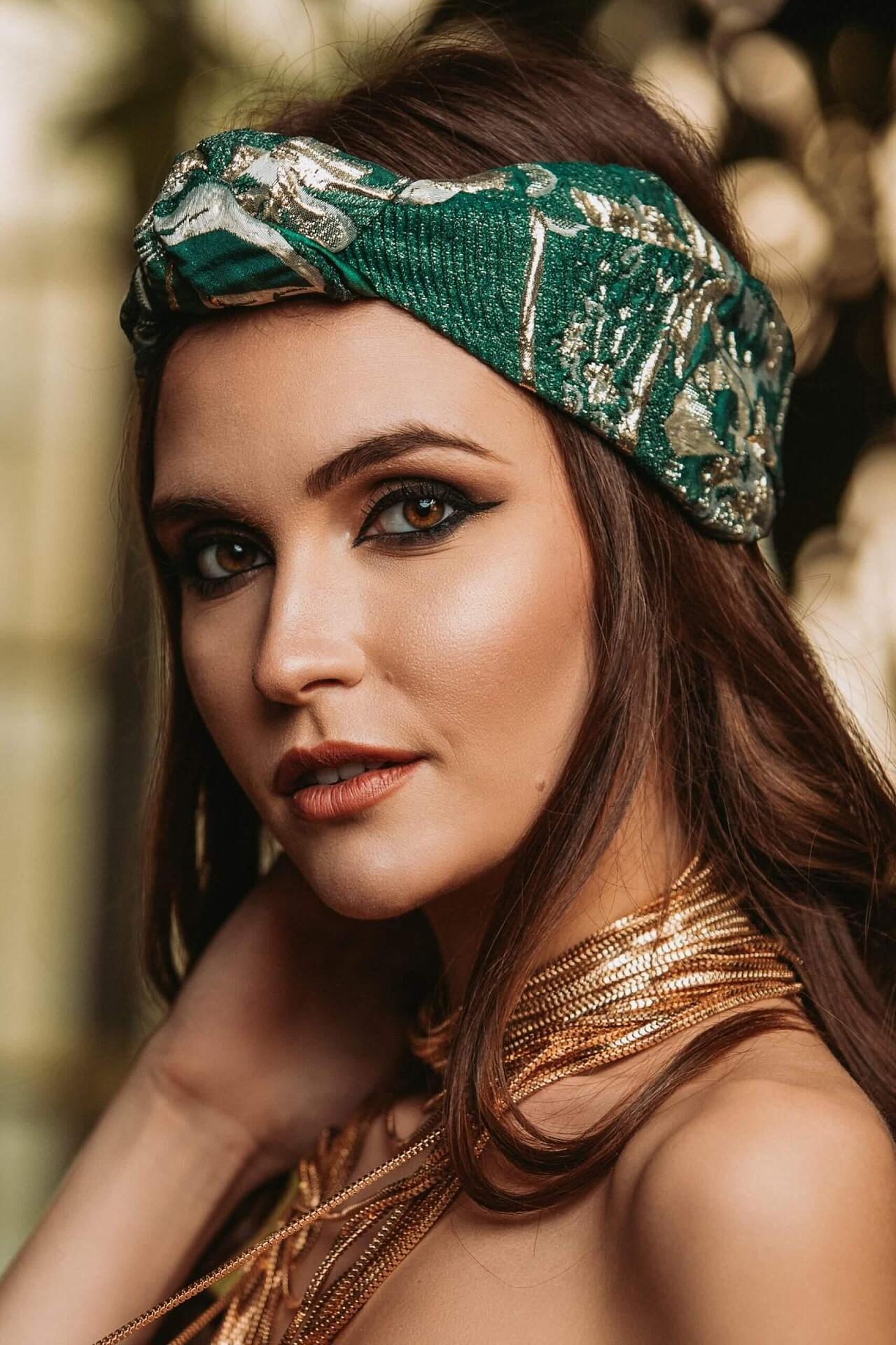 Жакардова лента за глава в зелено и златно