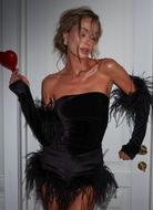 Preorder Кадифен сет с ръкавици и пера- Velvet Venom