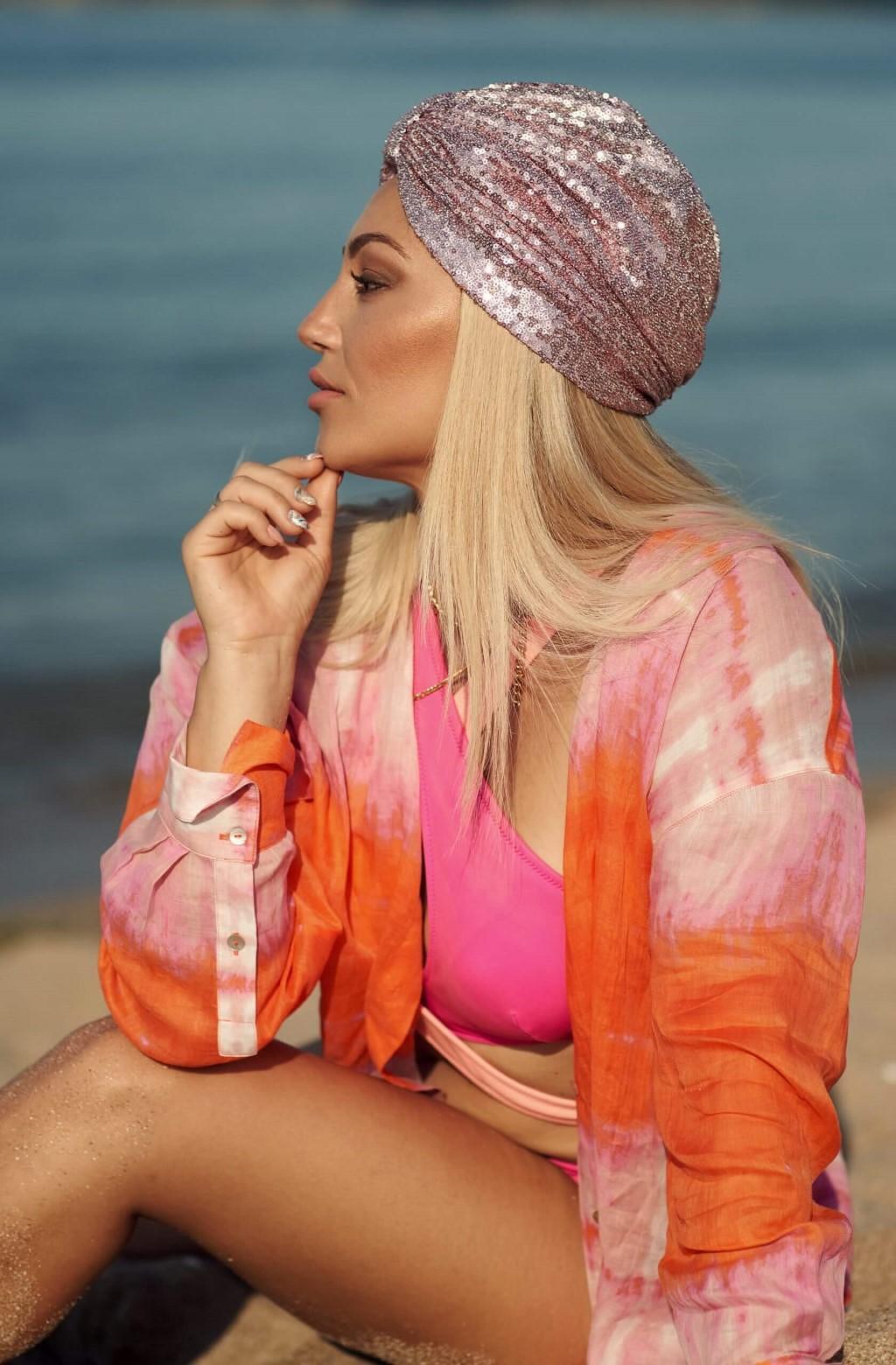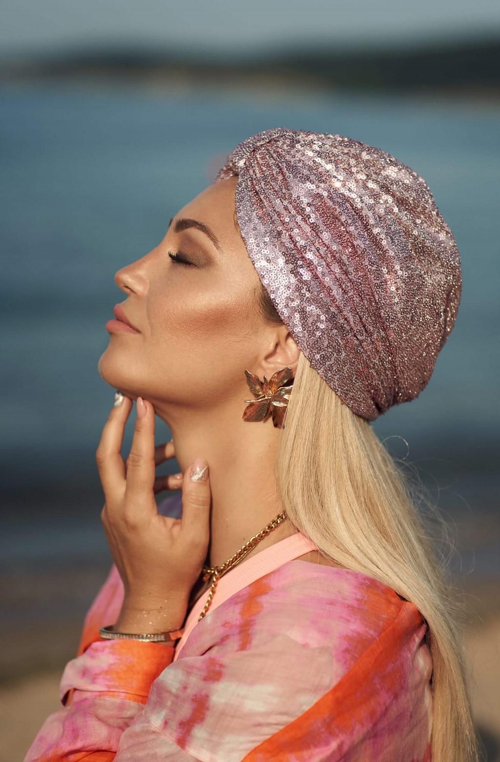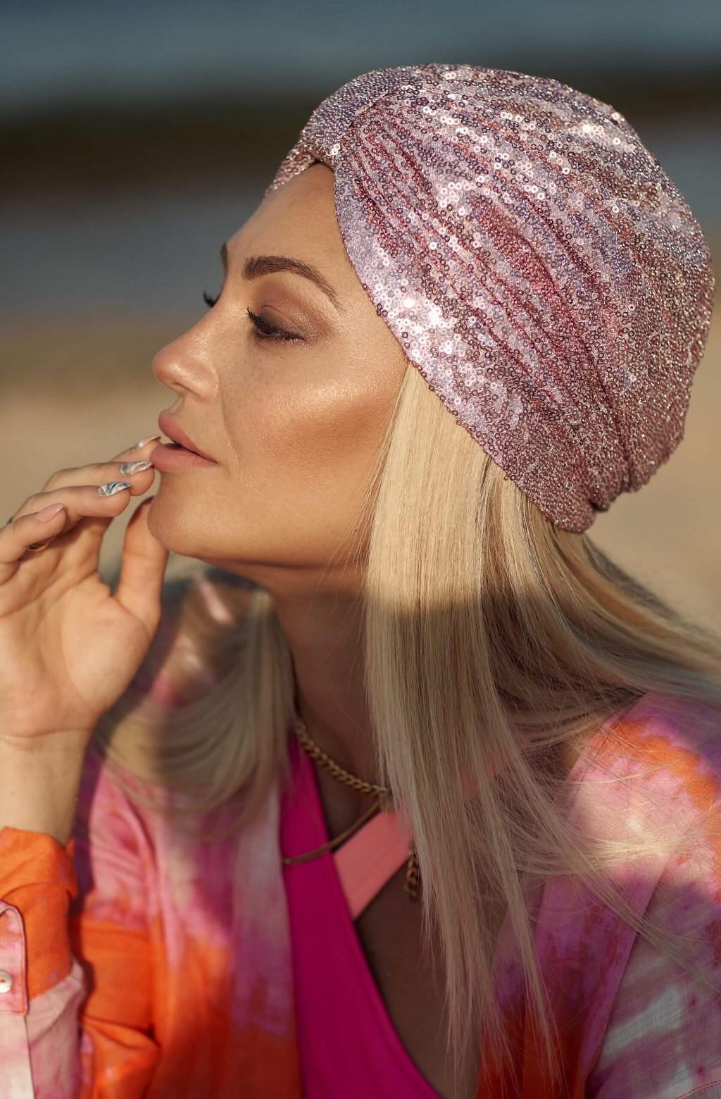 Луксозен Тюрбан с пайети в розово