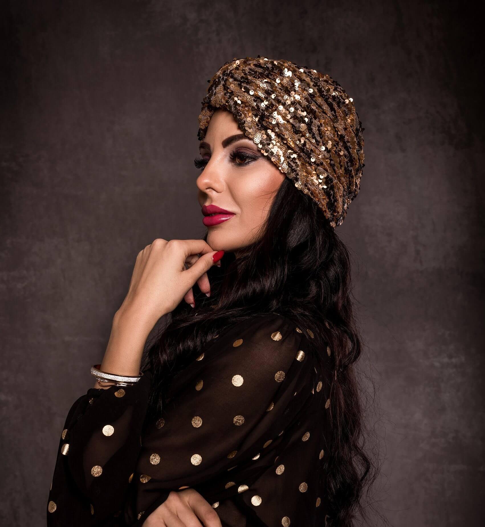 Луксозен Тюрбан със златни пайети